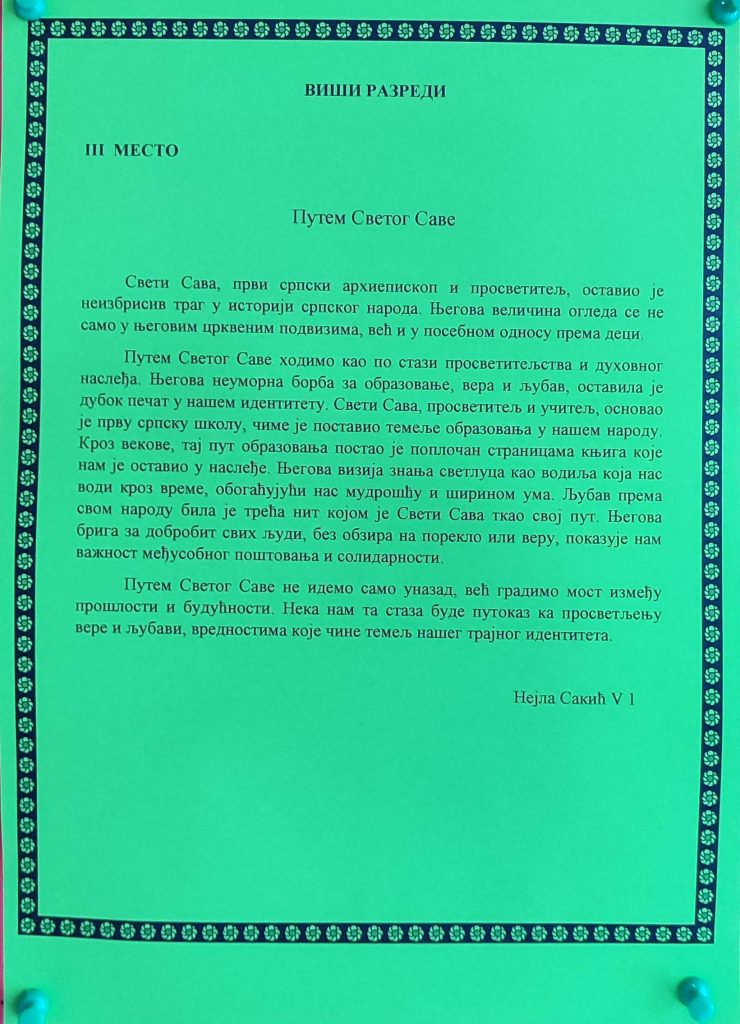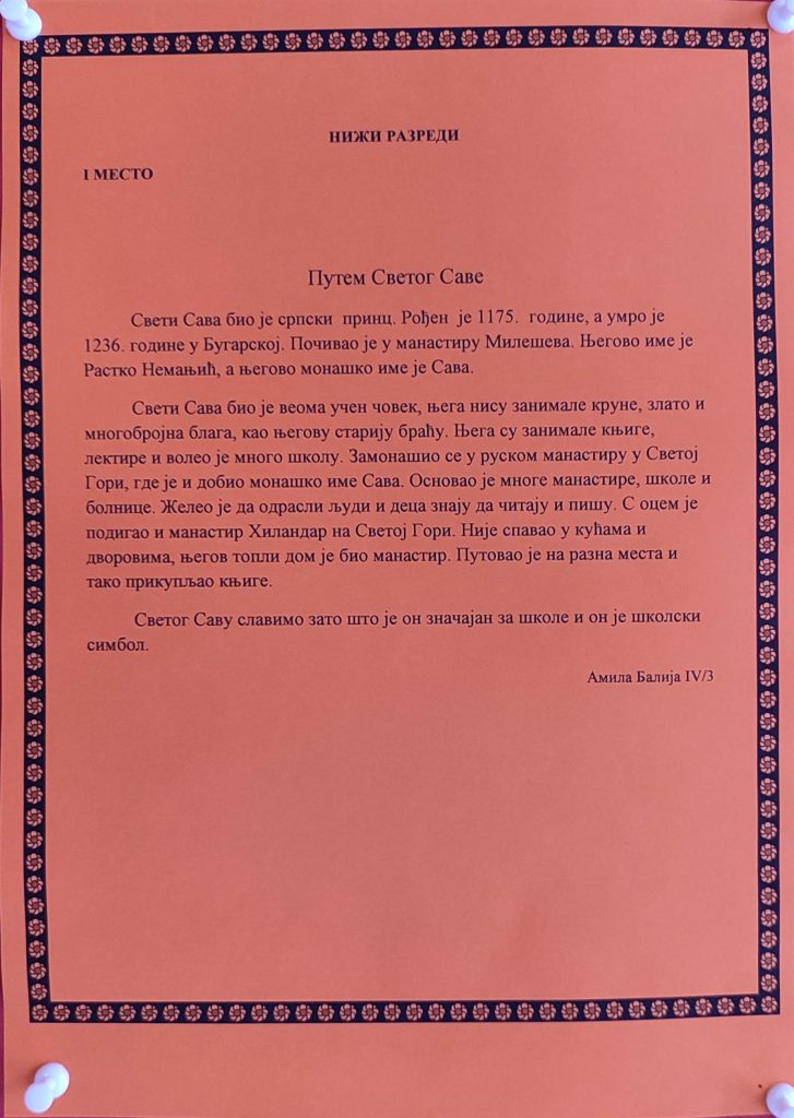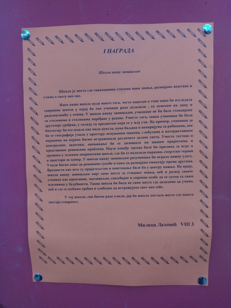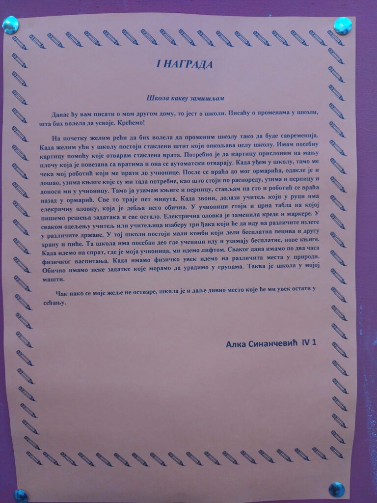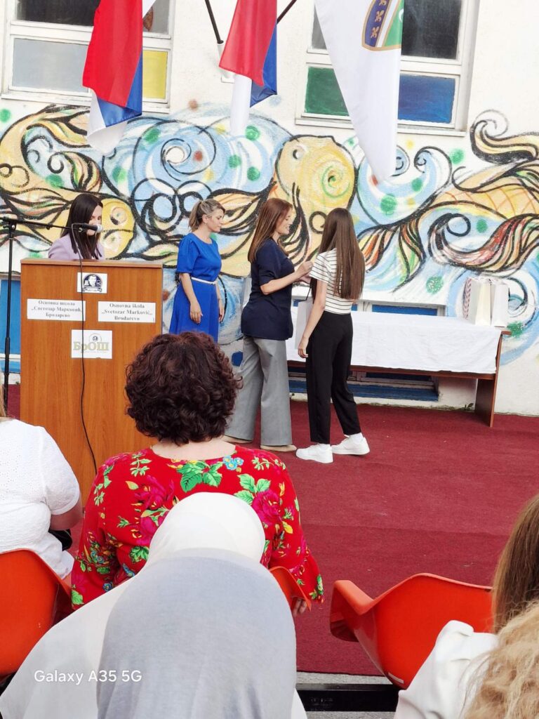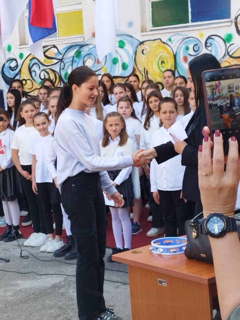 На самом крају свечаности, најуспешнијим ученицима уручене су награде за постигнуте резултате у ликовним и литерарним конкурсима. Овим чином симболично је заокружена прослава Дана школе, као подсећање да труд, знање и креативност увек бивају препознати и награђени.