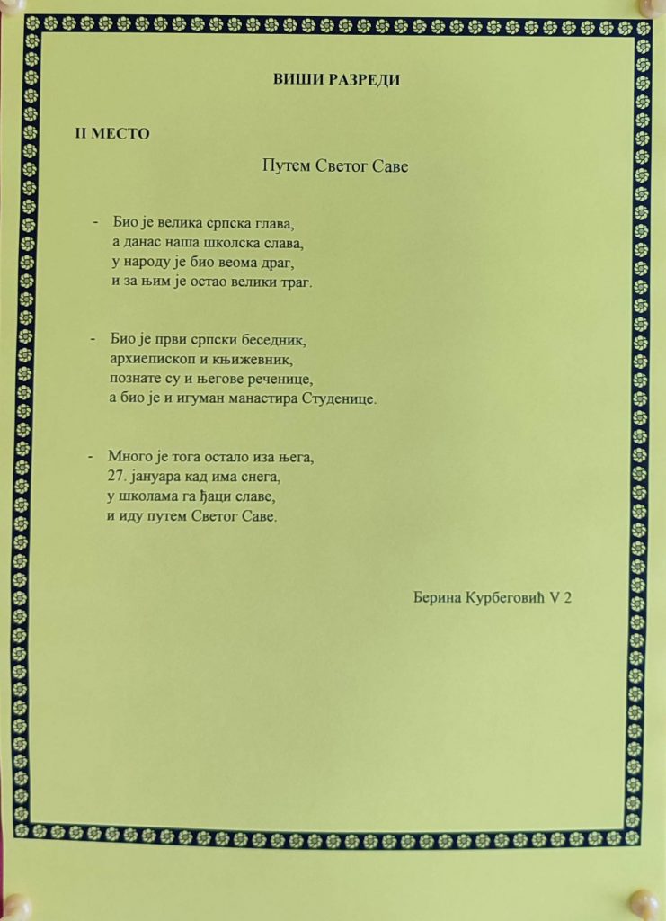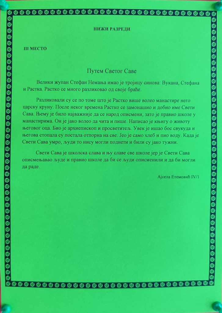 РЕЗУЛТАТИ ШКОЛСКОГ ТАКМИЧЕЊА ИЗ СРПСКОГ ЈЕЗИКА