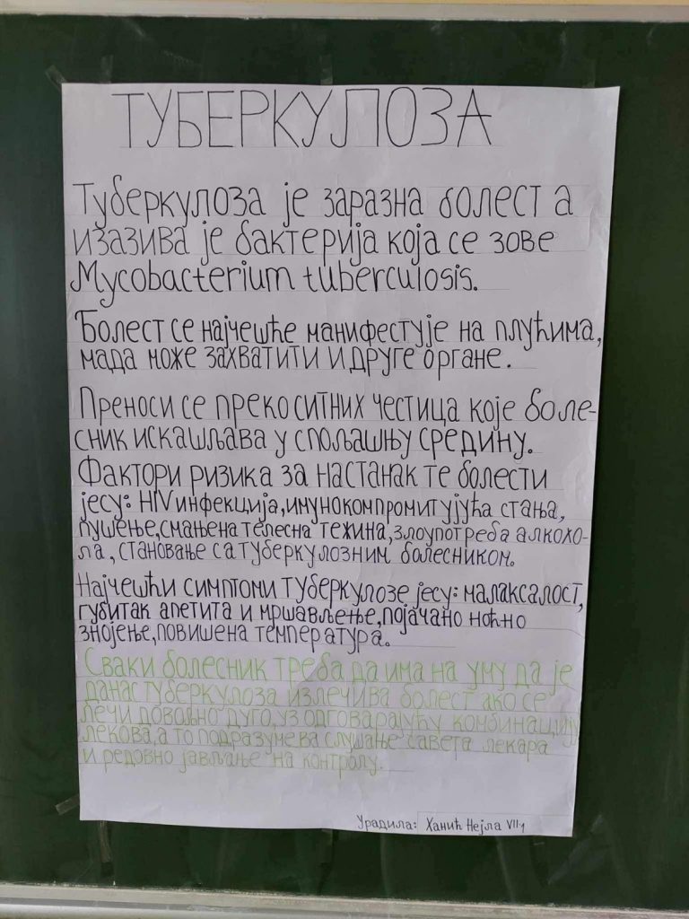 Kao i svake godine, tako je i ove biološko- ekološka sekcija naše škole dala svoj doprinos ovom važnom danu. Učenici su, na razne načine (kroz prezentacije, postere i glumu) pokazali koliko znaju o ovoj temi, skrenuli pažnju na njene važne segmente i upozorili svoje vršnjake na sve načine na koje mogu biti izloženi ovoj bolesti i načinima na koje mogu da se zaraze i zaštite.