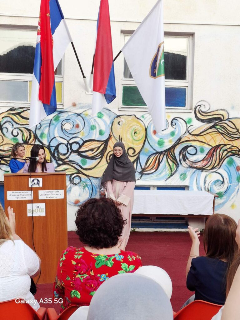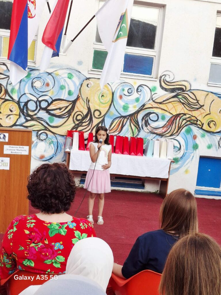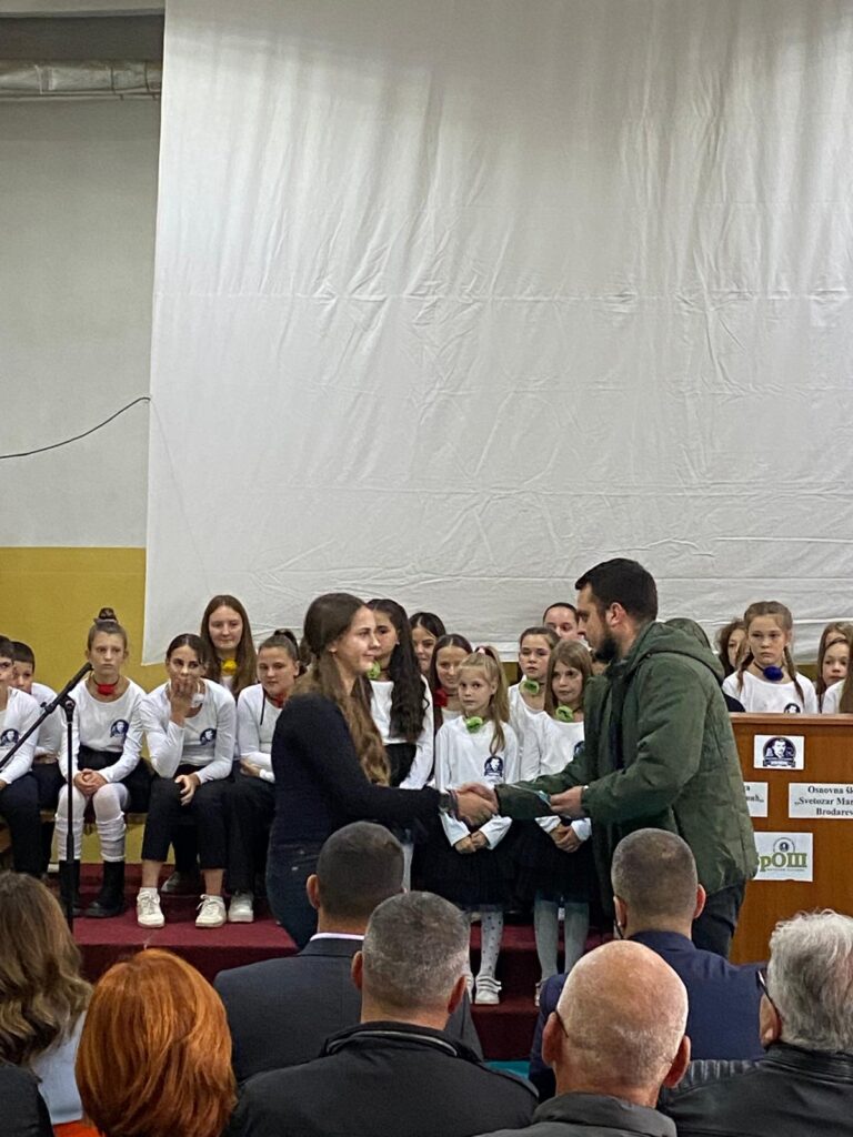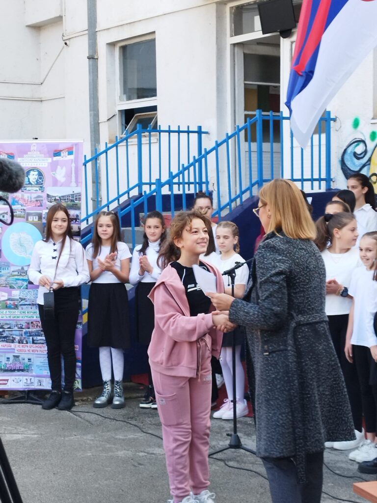 Свечаност је употпуњена и уметничким наступима ученика. Ученца Шејла одушевила је публику извођењем песме са којом је освојила друго место на Децурлијади, показавши још једном свој изузетан вокални таленат. Посебан утисак оставила је и Алина Козица, чија је интерпретација снажних стихова подсетила све присутне на моћ речи и важност неговања поезије и уметности у школском животу.