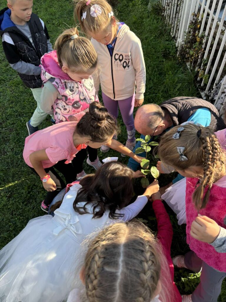 Jedna lepa tradicija postoji u našoj školi već duži niz godina. Svakog dvanaestog oktobra, kada škola slavi svoj rođendan, učenici prvog razreda sade svoje DRVO GENERACIJE u dvorištu škole. Tako je bilo i ove godine. Ovaj čin, osim što deci bude jako zanimljiv, nudi svima nama više važnih životnih lekcija. Uči nas zajedništvu, timskom radu, osvešćenju o važnosti očuvanja životne sredine i važnosti biljaka za održavanje ravnoteže u ekosistemu. Svaki put kada ta deca dođu da zaliju svoje drvo kako bi ono raslo, nesvesno će sebe da uče o važnosti ,,zalivanja“ ne samo drveta, već i sebe, svog znanja, svojih odnosa sa drugarima, učiteljima, nastavnicima, sugrađanima, i na kraju svog odnosa ka prirodi.