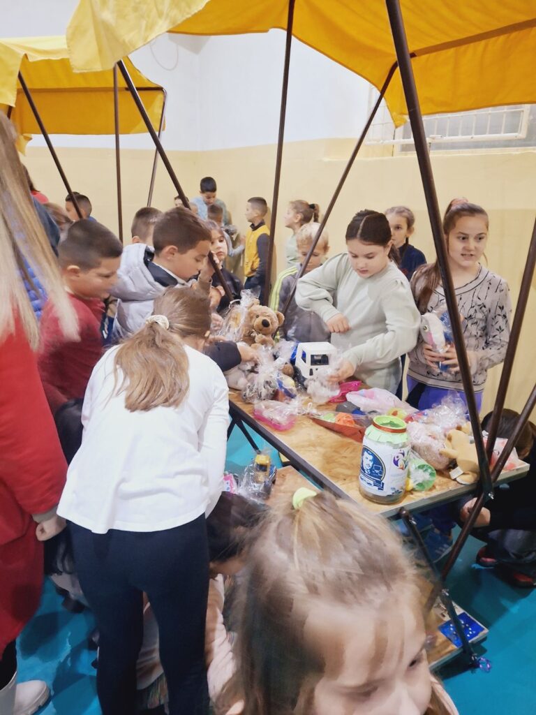 Наш базар је био права мала чаролија! Ученици су, заједно са својим наставницима, припремили и изложили разноврсне производе, од дечјих играчака, до ручно рађених предмета, украса и сувенира инспирисаних дечјом креативношћу. Посебно су се истакле играчке које су ученици сами направили, уз подршку својих наставника, показујући да машта нема граница.