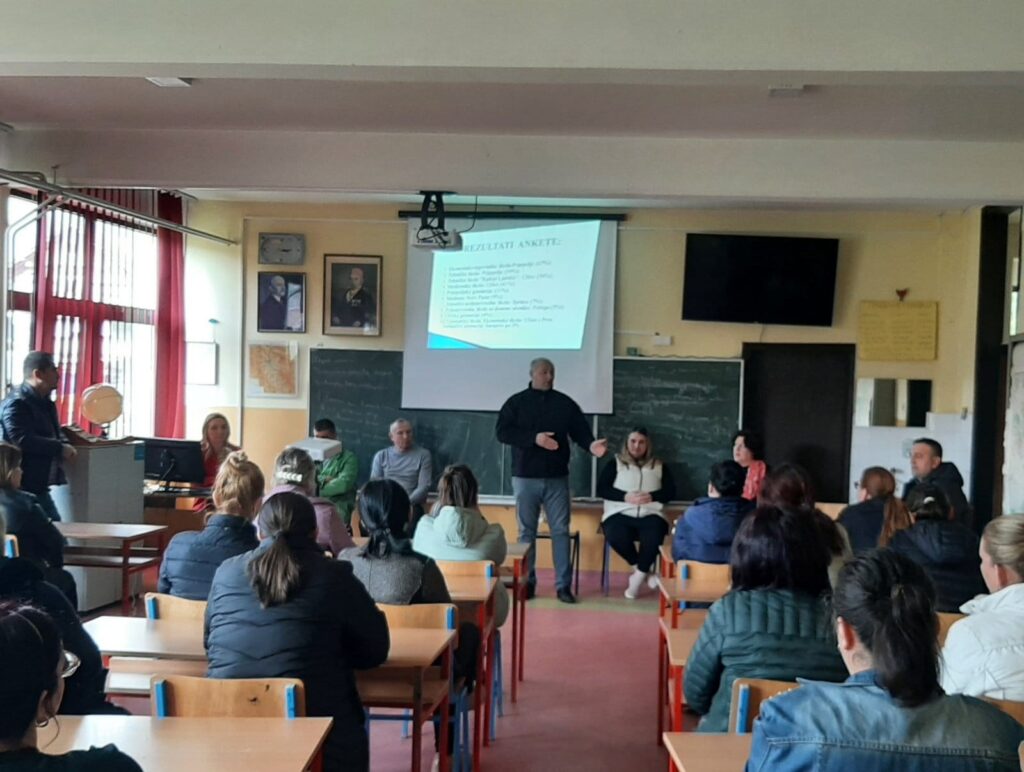 Danas je u sali opštinske uprave opštine Prijepolje održan sastanak koji su organizovali Aktivi direktora osnovnih i srednjih škola opštine Prijepolje. Sastanku je prisustvovao i direktor naše škole, predstavnici Saveta roditelja i stručni saradnici. Teme sastanka su bile sledeće: Postupanje i reagovanje ustanova u slučajevima nasilja- uloge i odgovornosti; Uloga roditelja u prevenciji i intervenciji u slučajevima nasilja i Saradnja obrazovno- vaspitnih ustanova i spoljašnje mreže- sprovođenje postupaka i procedura u situacijama nasilja. Sastanak je osmišljen tako da je na njemu prezentovana tema nasilja, a u skladu sa dopisom MPNTR i u cilju planiranja i realizovanja konkretnih preventivnih aktivnosti i ukazivanja na kontinuiran vaspitni rad sa učenicima.