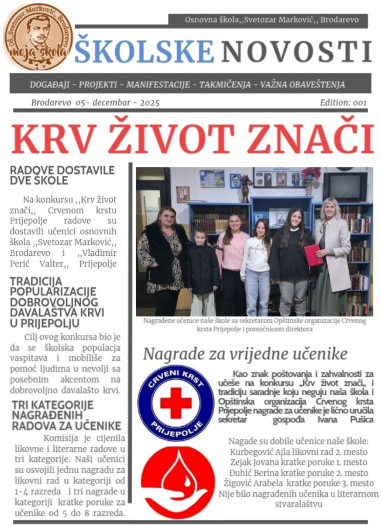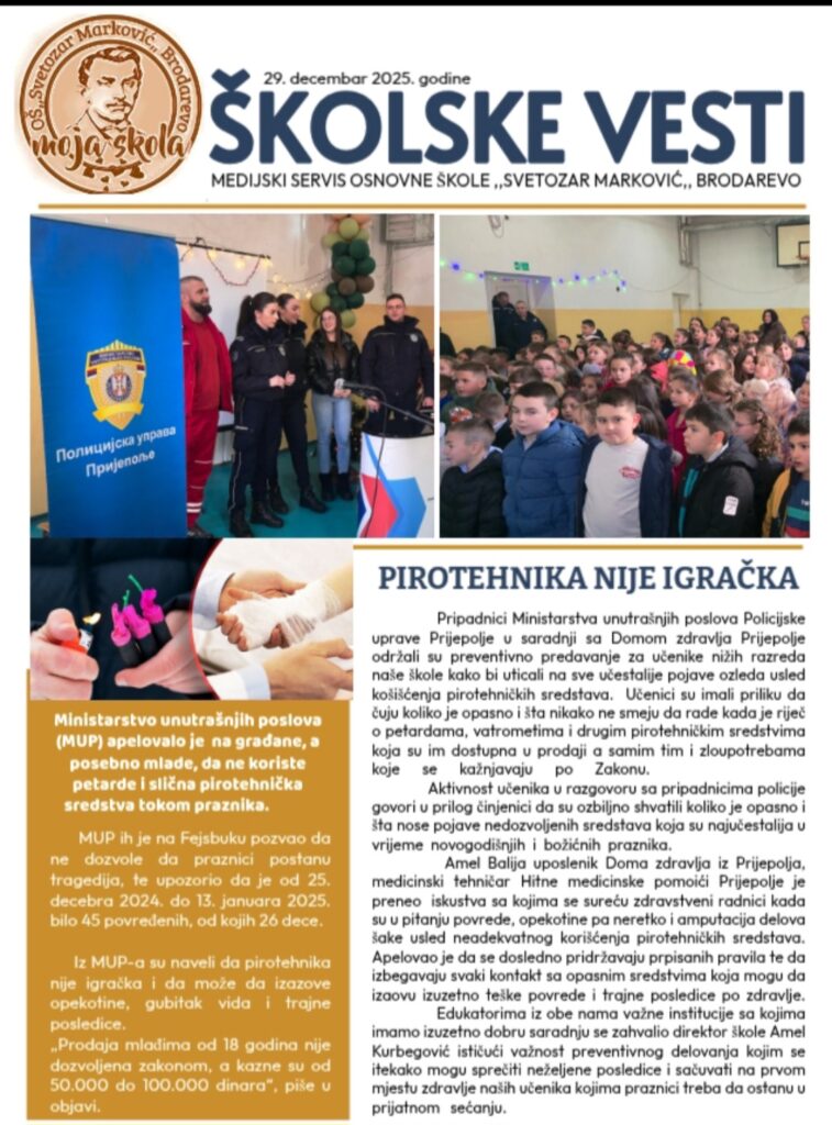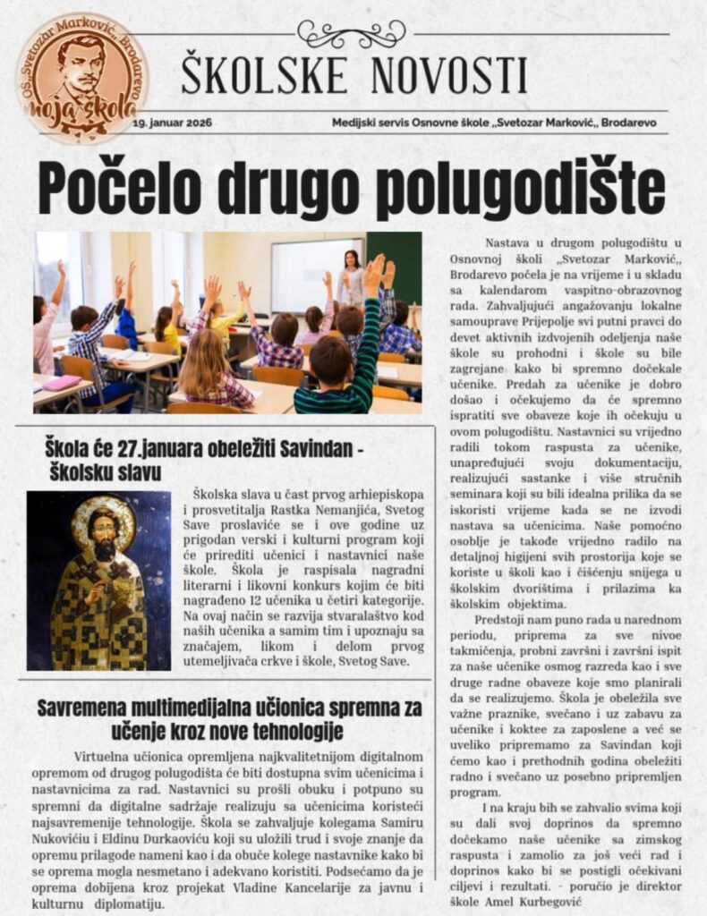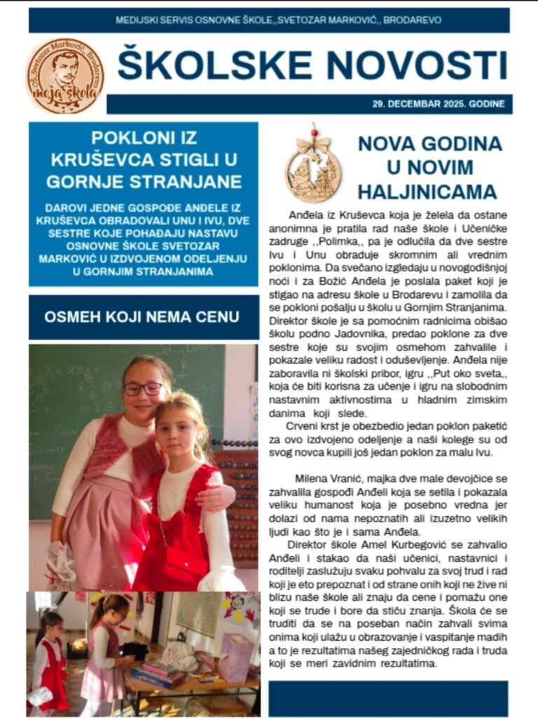 Занимљиве приче, актуелности и успехе наших ученика можете сазнати кроз треће издање школских вести за школску 2025/2026. годину.