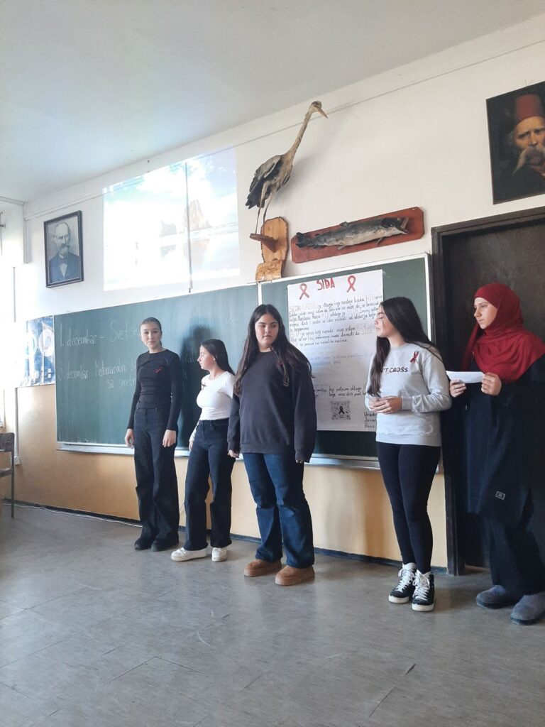 Дана 3.12.2025.године чланови биолошко-еколошке секције и Ученичког парламента наше школе предвођени психолошкињом Јасмином Мујезиновић и наставником биологије Денисом Аломеровићем кроз стручно предавање обележили су два значајна датума: Светски дан борбе против сиде (1.децембар) и Међународни дан особа са инвалидитетом и сметњама у развоју (3.децембар)